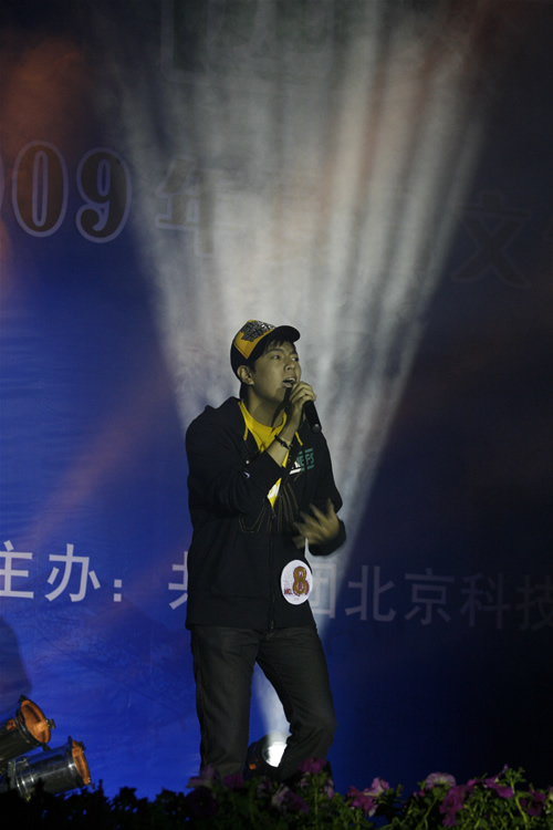 比赛随即步入高潮,08级土木系的于剑阳为大家所演唱的动感十足的歌曲《相信自己》使现场气氛更加热烈。而接下来出场的来自08级经济系的梁冠辰以一首《你怎么舍得我难过》的完美演绎惊艳全场,并获得了97.90的高分。