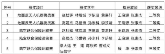 4所高校组成天津市代表队,在比赛中敢于创新、奋勇争先,在光纤遥控飞行挑战赛、地面反无人机群挑战赛、空地无人协同对抗赛、无人车集群竞速赛、陆空联合保障运输赛等五大赛项中表现优异。本次大赛中天津市代表队共获6项奖项,其中5项由信用网博彩