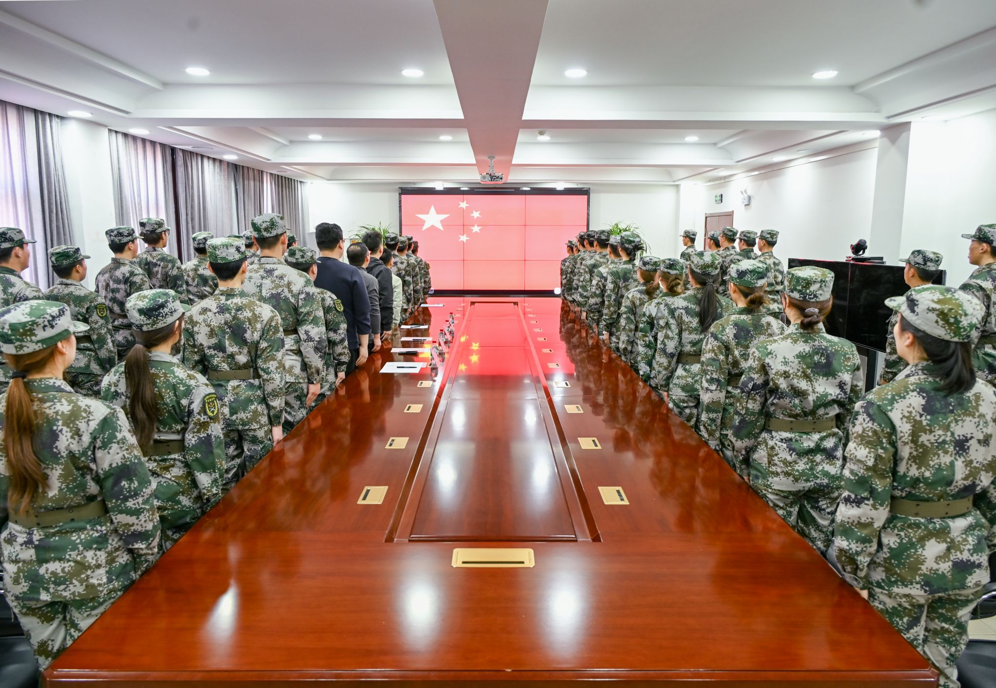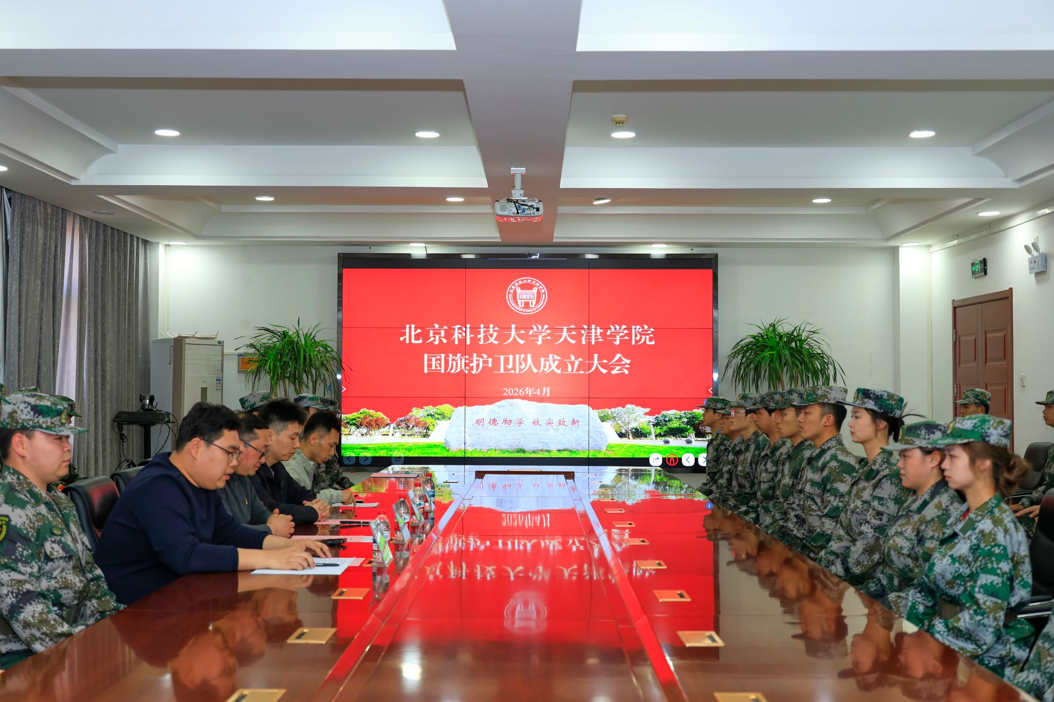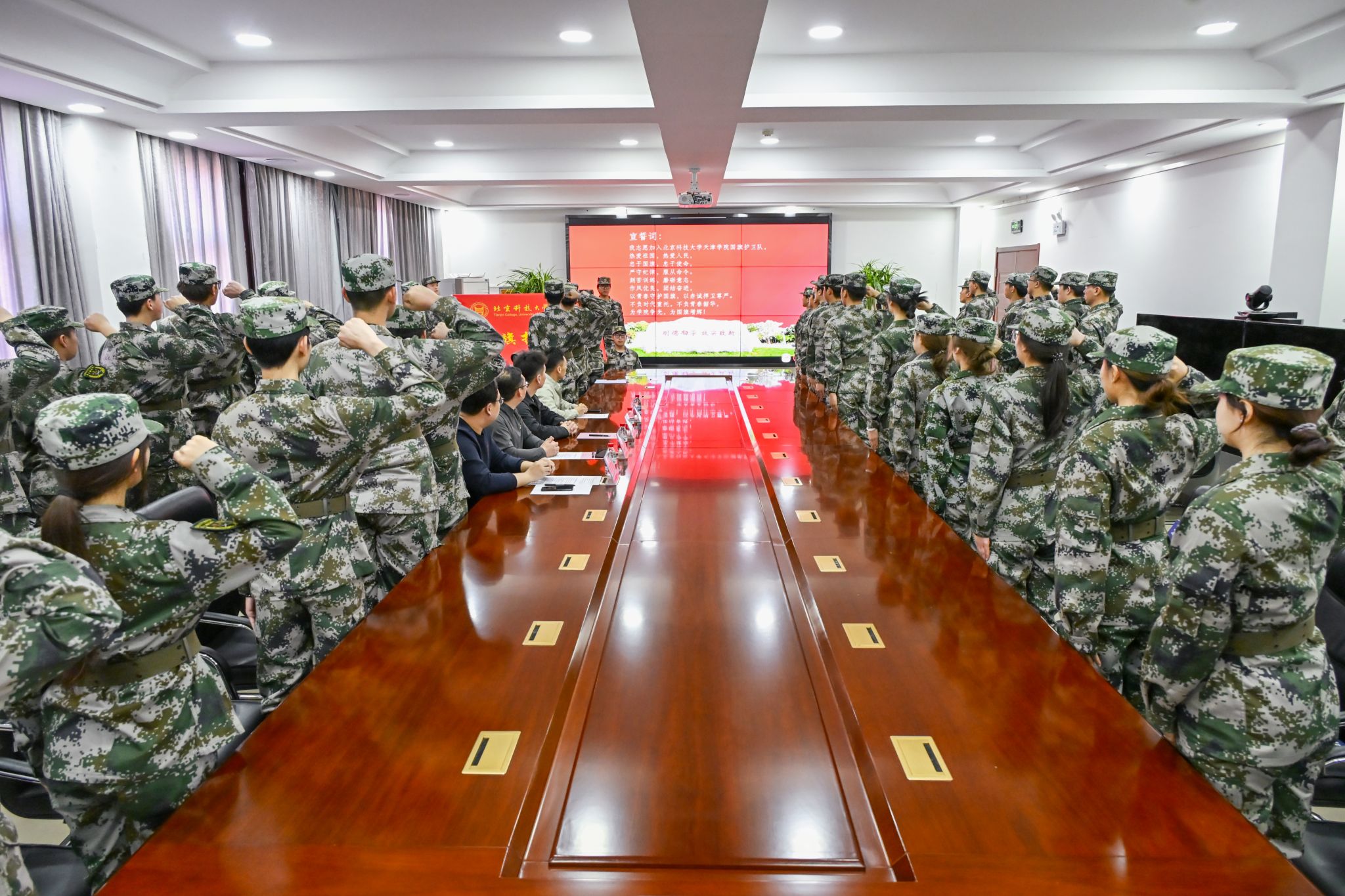党委副书记董亮、武装部副部长周少华出席,征兵办公室副主任李雲啸、国防教育科副科长刘武辉及国旗护卫队全体队员共50余人参加。