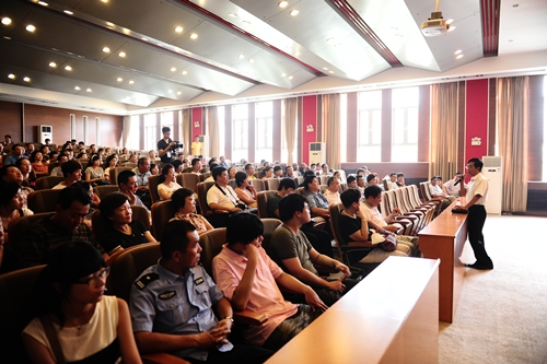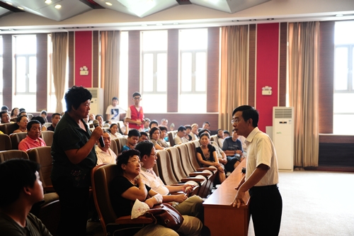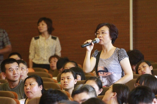 情况并回答问题。新生家长热情高涨,报告厅内无虚席。
