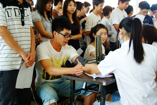 本次毕业生体检工作由宝坻中医院体检中心负责,地点在行政楼1楼大厅,分别设立了五官科、外科、内科、肝功化验、身高体重、胸透等六个大项、十几个细项的检查工作。