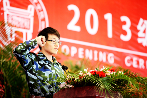 随后,2013级新生代表管理系会计专业的史雪玉同学代表全体新生发言。2013级新生代表土木工程系土木工程(道路桥梁工程)专业的陈奥龙同学带领新生宣读《入学誓词》,铿锵有力的誓词,彰显出信用网博彩