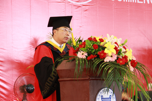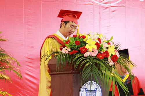 院长郭景文代表学校领导和广大师生员工,向圆满完成学业的毕业生表示最热烈的祝贺。郭院长对毕业生给予了殷切的希望和深切的祝福。同时希望全体毕业生谨记:梦想和志向是前行指南针,要树立志向,追逐梦想,只有“奋斗”才能无限接近成功。希望同学们继续关注母校的发展,常回家看看。