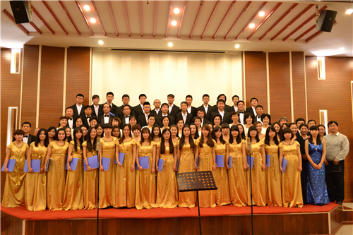 天津都市礼仪合唱团与学生艺术团合唱团演出后合影留念