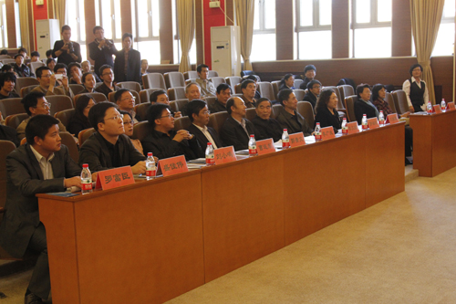 院长郭景文、秘书长李广生先后发表重要讲话。郭院长高度概括了图书馆的发展历程和我馆历年来所取得的成绩,并对今后的工作提出了新的希望。随后,图书馆馆长刘淑娥向到会领导和嘉宾做了工作汇报,并播放了汇报短片。