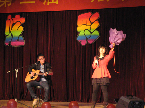 晚会由激情四溢的乐队带来的《倔强》拉开帷幕,劲爆的音乐,默契的配合点燃了全场的激情。热情奔放的爵士独舞《change》更是把现场的气氛推上一个高潮,那轻灵而娴熟的节奏、动感而激情的舞姿以及她与音乐完美的融合,无不震撼着在场的所有观众。紧接着各种节目轮番登场,异彩纷呈,魅力四射。有深情款款的对唱《男人女人》,魔幻神奇的魔术表演,青春洋溢的健美操表演,妙趣横生的小品《爱笑会议室》和唯美动听的二胡独奏等精彩节目。最终,晚会在小合唱《爱》的歌声中圆满结束。