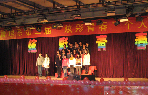 为拓展学生综合素质,突显个性发展。11月28日晚7:00,管理系第二届“炫彩青春”个人魅力展晚会在学生活动中心举行。管理系教师和辅导员参加并观看晚会。晚会也吸引了管理系同学们的积极响应和热情参与。
