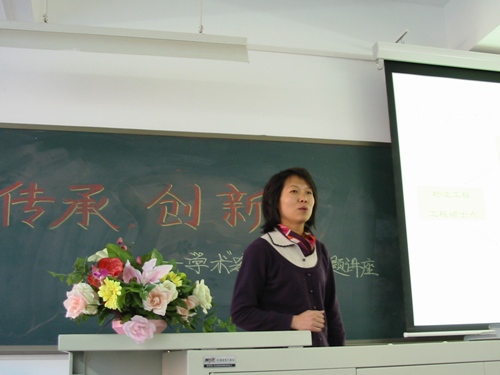 丁文英教授主讲。机械系系主任冯爱兰教授、机械系党总支书记郭雅娟及机械系学生参加了讲座。