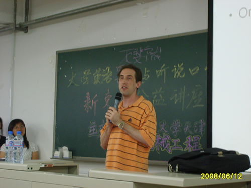 机械工程系主办的“大学英语四六级与听说口语”专题公益讲座在八教101室举行。本次讲座的主讲人为新东方学校优秀教师褚嘉铭和新东方优秀教师Critis•Stone(石斐然)。