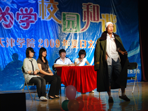 比赛间隙,魔术社的彭洋为观众带来了神奇的魔术,引起了一片惊呼。休息之后,管理系尧健强和经济系安韦共同合作的《校园新东方》登台表演,清新的校园风味在其中尽显。第四组是由“什锦菜”话剧社选送的《应聘》,讲述了一群天差地别的人共同面对面试的故事,创意突出。随后上台的《山西家信》更是展现了浓浓的地方特色,经济系的高鹏、杨凯赢得了观众的热烈掌声。