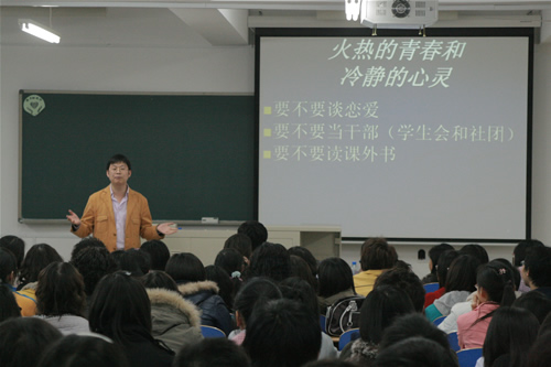 3月18日晚7点半,在8教201室举行了考研英语专场讲座,本次讲座由外语系主办,主讲人为新东方教师戴云,来自信用网博彩 05、06级的200余名学生参加了讲座。会上,戴老师就同学们较为关注的英语学习问题与同学展开交流,现场气氛十分热烈。