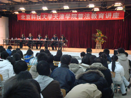保卫处处长何国钧、05级学生辅导员及全体05级学生参加会议。主讲人为宝坻区检察院检察长徐学海。