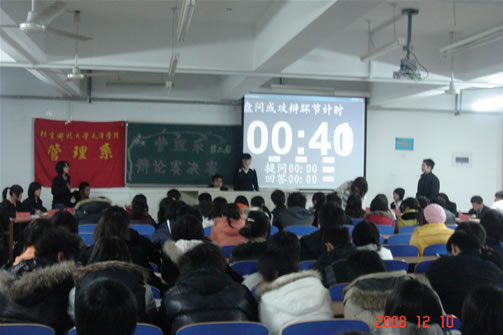 管理系第二届辩论赛由管理系分团委主办,旨在锻炼同学们的口才和逻辑思维能力,比赛面向管理系广大同学,共有16支代表队参加了比赛,比赛自11月12日起,历时一个月,12月10日落幕。 初赛:唇枪舌...