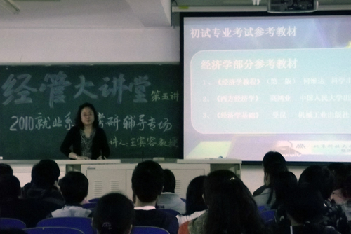 9月29日,经管大讲第五讲——2011届毕业生就业系列考研辅导专场在9教201拉开了帷幕。此次经管大讲堂由经济系主任王宾容教授主讲,经济系党总支书记岳强、管理系分团委书记谢锦程以及毕业生辅导员出席了本次交流会。 ...
