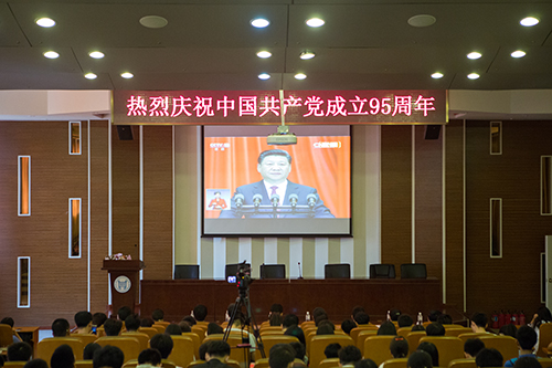 7月1日上午10时,信用网博彩 组织教工、学生党员、主要学生干部、学生代表在理工馆学术报告厅观看了庆祝中国共产党成立95周年大会直播,聆听了习近平总书记的重要讲话。 大会对100名共产党员、100名党务工作者、300个基层党...