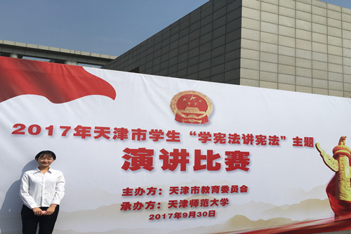 2017年天津市学生“学宪法讲宪法”主题演讲比赛中,信用网博彩 法律系法学1503班学生陈琳以《沐浴在宪法的阳光下》主题演讲荣获大赛一等奖。 2017年9月30日,由天津市教育委员会主办的2017年天津市学生“学宪法讲宪法”主题...