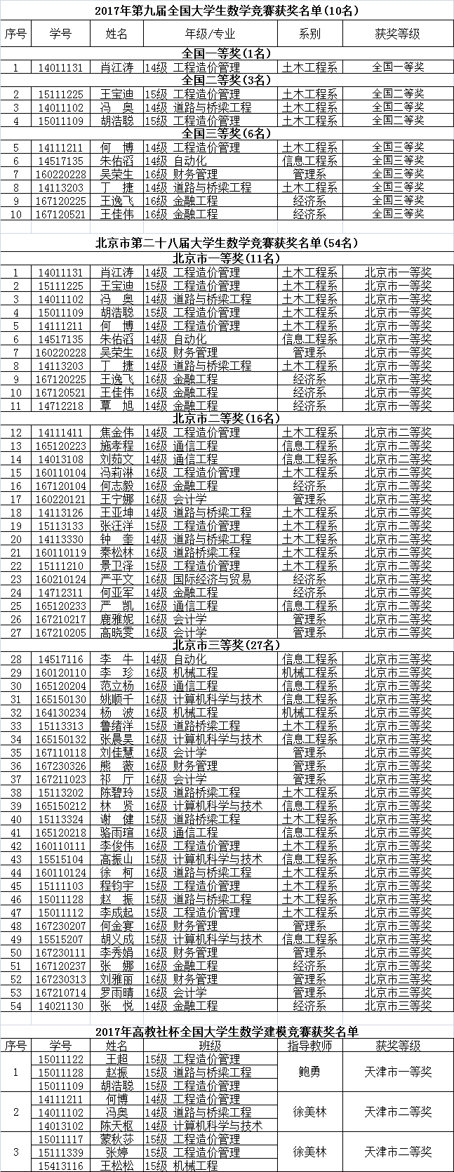 2017 年10 月28 日,第九届全国大学生数学竞赛初赛在全国28个省、市、自治区成功举行。比赛分为数学专业和非数学专业两个类别。信用网博彩 共有212名同学参加了非数学专业组比赛,土木工程系肖江涛同学获得北京赛区(国家级...