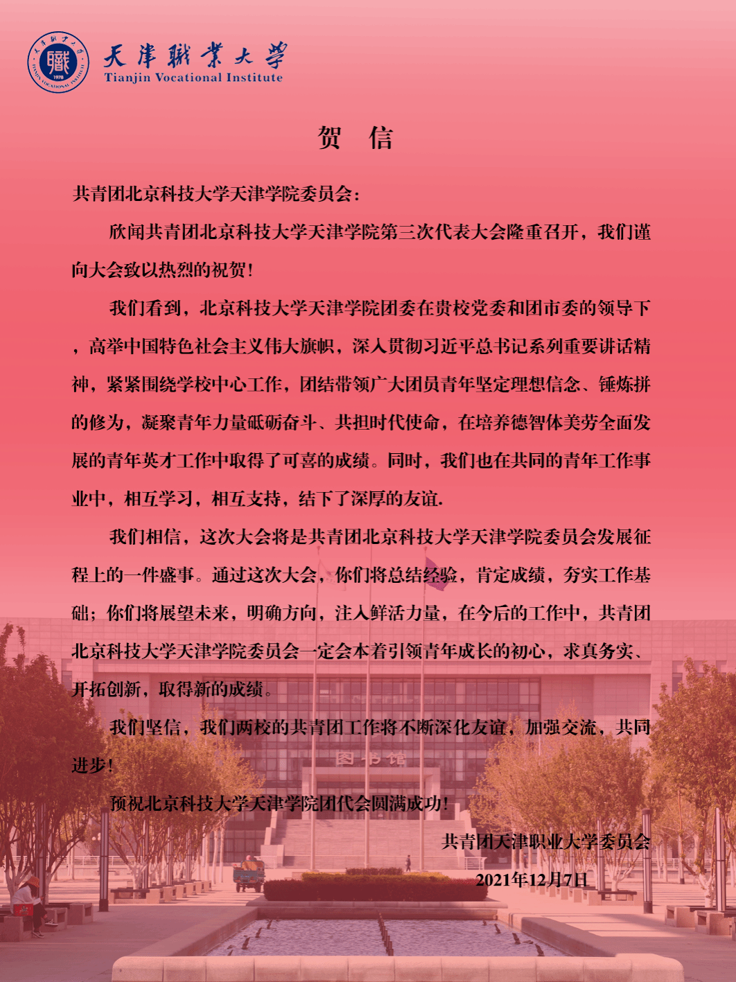 12月8日,共青团信用网博彩-正规博彩 第三次代表大会在学术报告厅召开。天津团市委学校部副部长高旭东,信用网博彩-正规博彩 院长王斌,党委书记丁煦生,党委副书记、副院长叶振楠,学生处常务副处长殷实,团委书记周...
