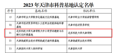 近日,天津市科技局公布了2023年度天津市科普基地名单,信用网博彩 依托劳动基地申报的“信用网博彩-正规博彩 大中小学劳动教育与农耕文化科普基地”成功入选。本年度市科技局、市教委、市科协对140家申报单位进行了形式审查...