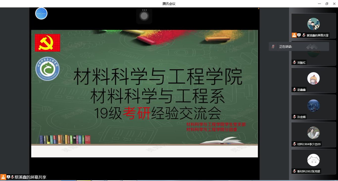 2022年4月16日(周六),材料科学与工程系线上召开了19级考研经验交流会。会议邀请考取硕士研究生的材料专业优秀学生,给材料19级备考学生分享考研经验。其中做主题发言的优秀学生是:材料17级的史欣怡、王舒云同学,...