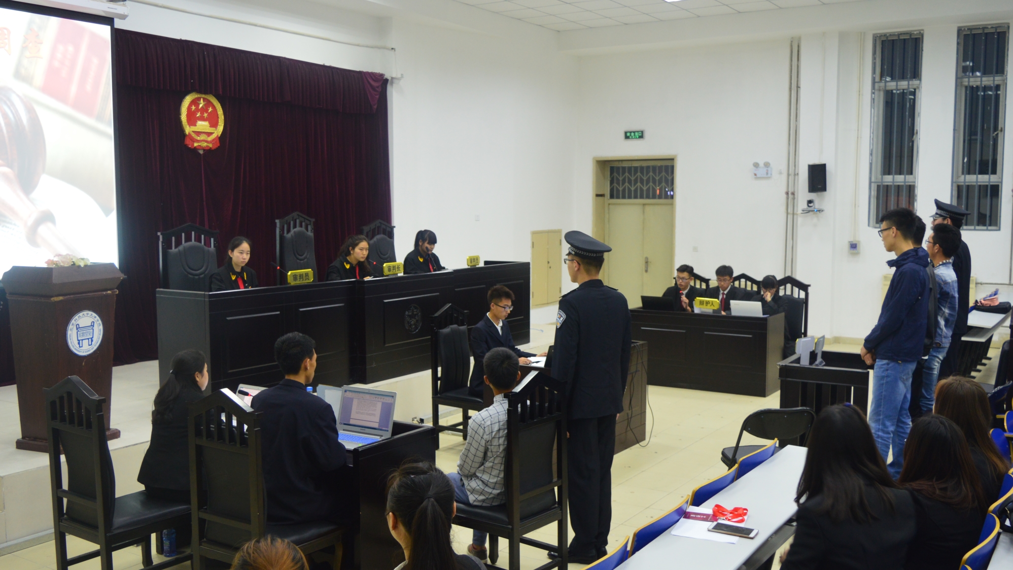 2017年5月8日晚7:00,法律系模拟法庭在8教109进行。出席此次活动的嘉宾有:法律系刘志苏教授、法律系党总支书记冯海燕、法律系霍秀云、陈慧、赵亚男老师、法律系分团委书记孙超、16级辅导员孔龙。 为了使同学们更加深...