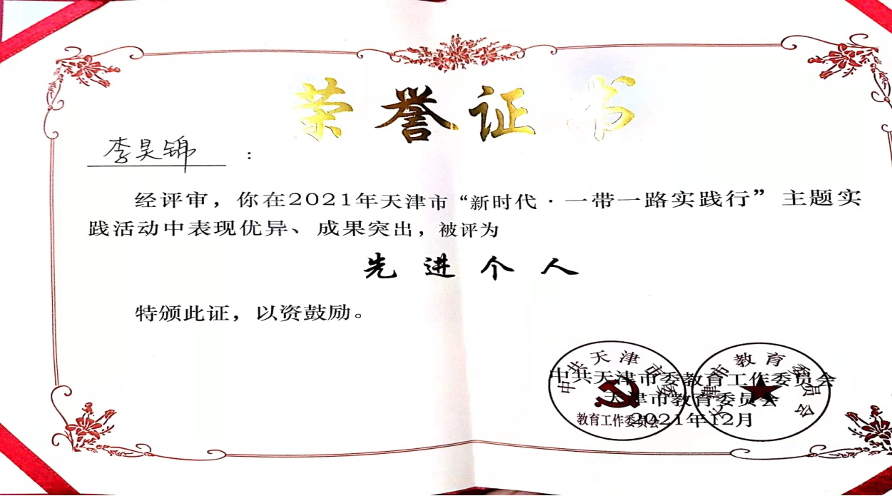 近日,我校在市教育两委组织开展的“新时代·实践行”系列实践活动中喜获佳绩,由外国语信用网博彩 组建的“新时代外语构建桥梁·外音博长”实践团在一带一路项目中荣获2021年天津市“新时代•一带一路实践行”先进集体称号;...