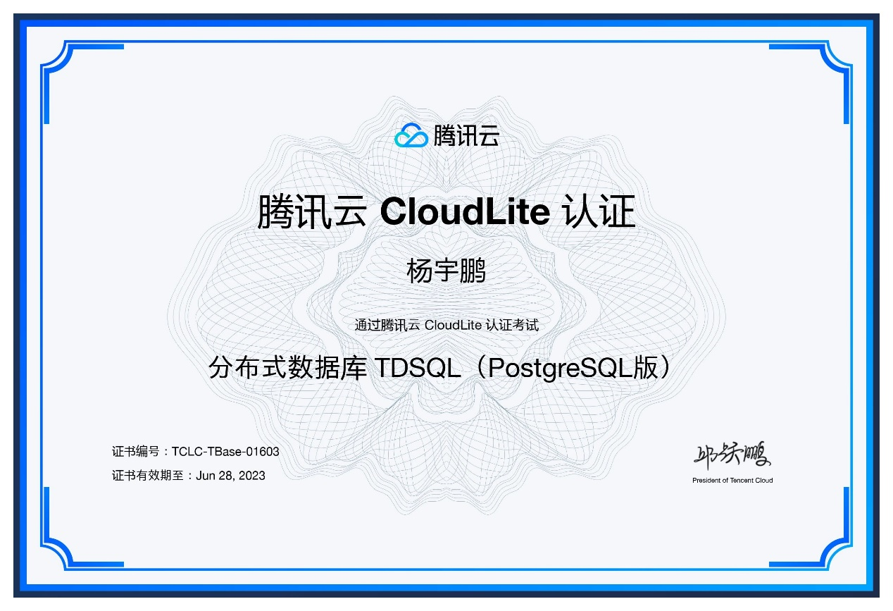 信息工程信用网博彩 与北京神脑资讯有限公司合作的数据库工作室,于2021年6月在信用网博彩 完成PostgreSQL免费培训,并进行了“TCA认证”。TCA认证是腾讯云认证体系中的入门级认证,该认证考试是面向在校大学生的专业权威技术认证体...