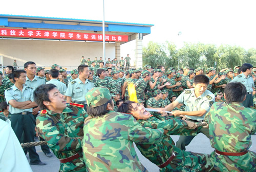 2007年9月8日下午3点,在北京市怀柔区群英昊军训基地的操场上,一场别开生面的拔河比赛在呐喊声与欢呼声中拉开了帷幕。 比赛以连为单位进行,同学们争相参加,男生组有7支队伍,每支15人,女生组有5支队伍,每支2...